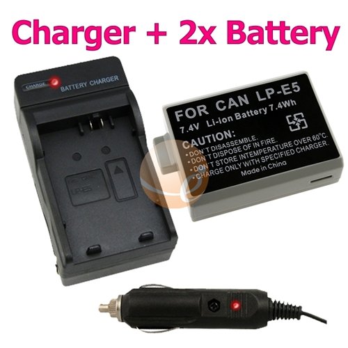 TWO LP-E5 Replacement Battery + Battery Charger FOR CANON CAMERA EOS Digital Rebel T1i