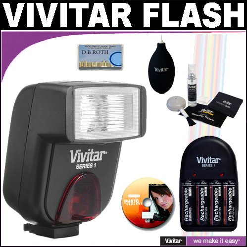 Buy Vivitar Series 1 DF183 DSLR AF Bounce Flash + Vivitar (4) AA Batteries & Charger + Vivitar Cleaning Kit For The Canon Digital EOS Rebel T1i, T2i, XSI, XS, XTI, XT, 50D, 40D, 30D, 20D, 10D, 5D, 1D, 5D Mark 2, 7D, G11, G10, G9, G7, SX20, SX10, SX1, S5 IS Digital SLR Cameras Now